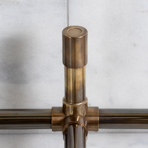 The quality of materials and craftsmanship found within the handmade Camden are synonymous with Rutland London. Handmade to order in our family-owned Hampshire factory, the Camden Vanity Stand is manufactured from 32mm diameter DZR brass tube, modern "standard" joints and elegant 75mm diameter brass wall plates.