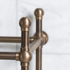 The quality of materials and craftsmanship found within the handmade Regent are synonymous with Rutland London. Handmade to order in our family-owned Hampshire factory, the Regent Vanity Stand is manufactured from 32mm diameter DZR brass tube, timeless Italian ball joints and elegant 75mm diameter brass wall plates.