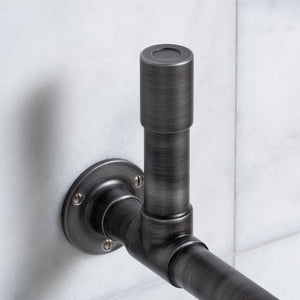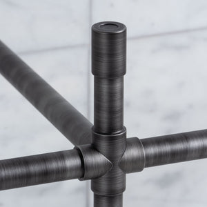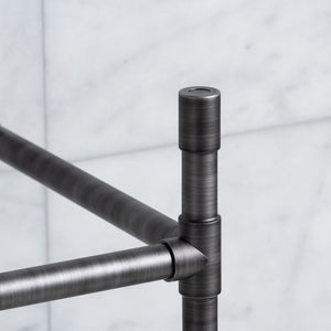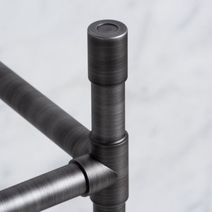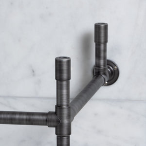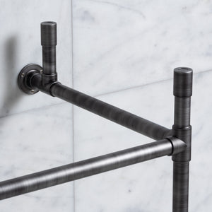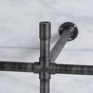 The quality of materials and craftsmanship found within the handmade Thornhill are synonymous with Rutland London. Handmade to order in our family-owned Hampshire factory, the Thornhill Vanity Stand is manufactured from 32mm diameter DZR brass tube, modern "standard" joints and elegant 75mm diameter brass wall plates.