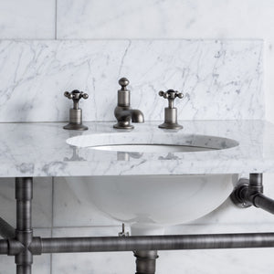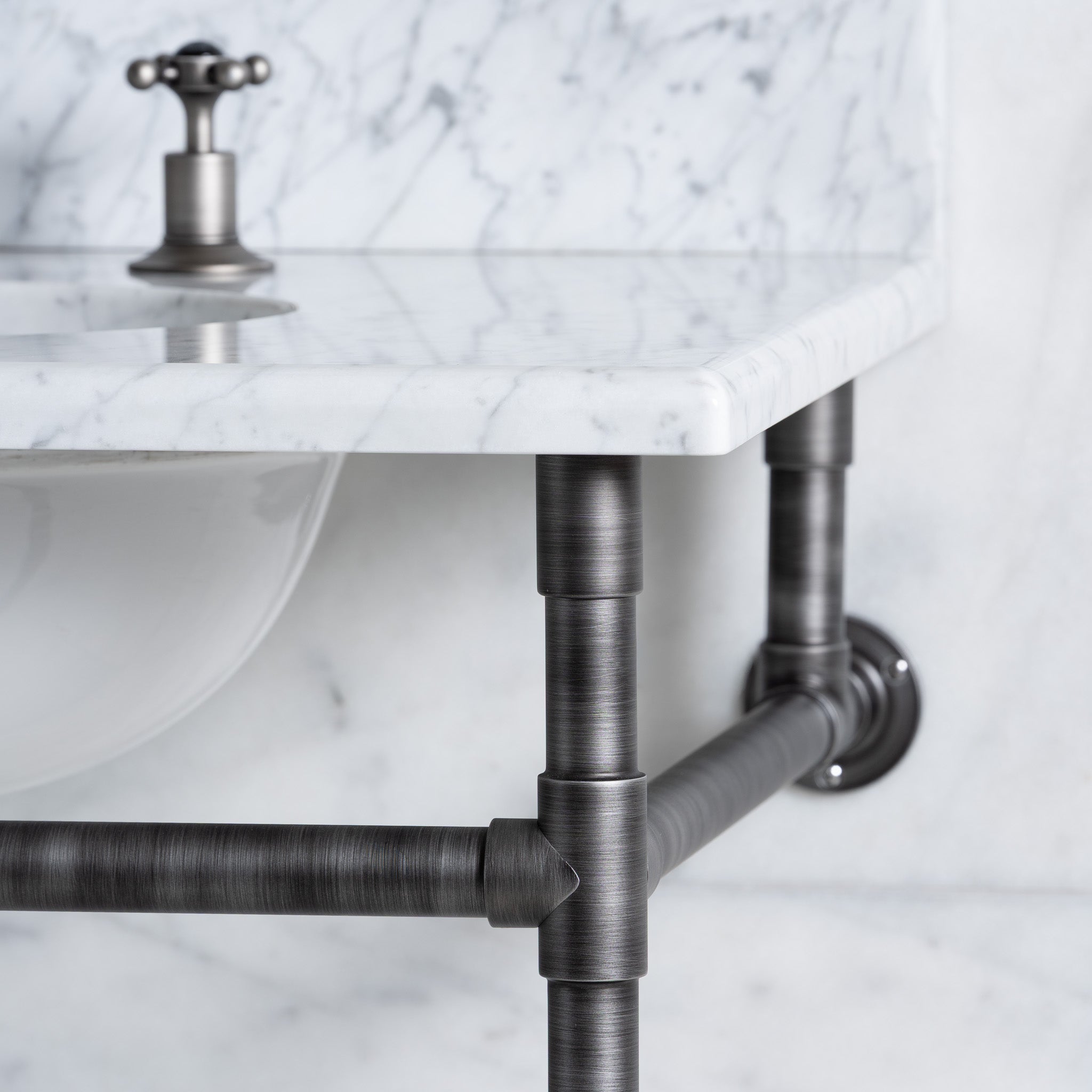 It should be noted that the marble configuration offered on our website is for a marble top and with a pencil edge, 200mm (H) upstand (with matching pencil edge) and 3no. tapholes per basin. All aspects of the marble top are available to be tailored to your project demands and we would therefore encourage you to contact Rutland London with your specific project requirements prior to ordering.