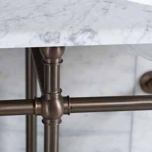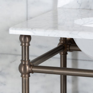 The quality of materials and craftsmanship found within the handmade Cadogan washstand is synonymous with Rutland London. Handmade to order in our family-owned Hampshire factory, the luxury Cadogan Vanity Suite is manufactured from 32mm diameter DZR brass tube, timeless embellished Italian ball joints and elegant 83mm diameter brass wall plates.