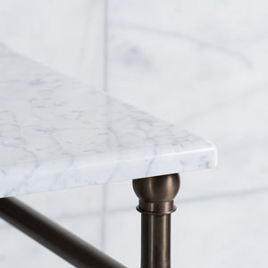 It should be noted that the marble configuration offered on our website is for a marble top with a pencil edge, 200mm (H) upstand (with matching pencil edge) and 3no. tapholes per basin. All aspects of the marble top are available to be tailored to your project demands and we would therefore encourage you to contact Rutland London with your specific project requirements prior to ordering.