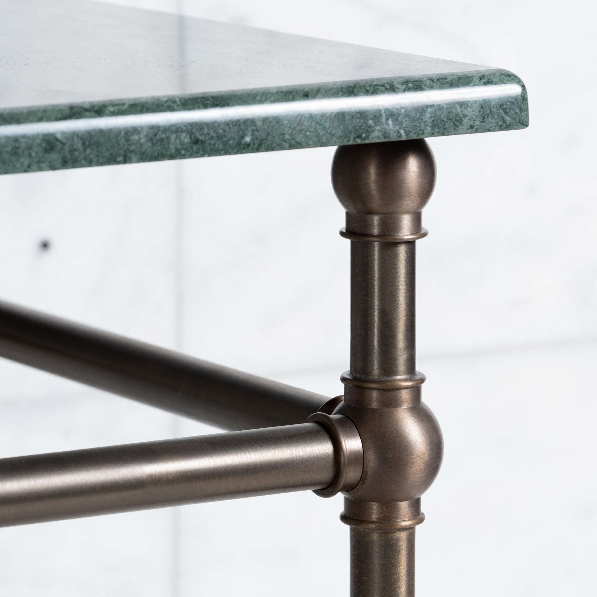 Marble loses its shine with wear and is a soft material that easily scratches and can be stained due to its relatively high porosity. To ensure the longevity of our marble, Rutland London recommends the regular application of sealant to all marble surfaces.
